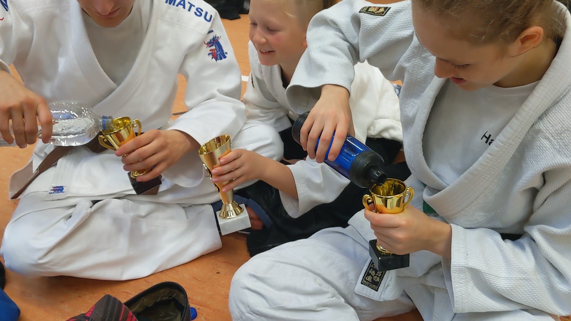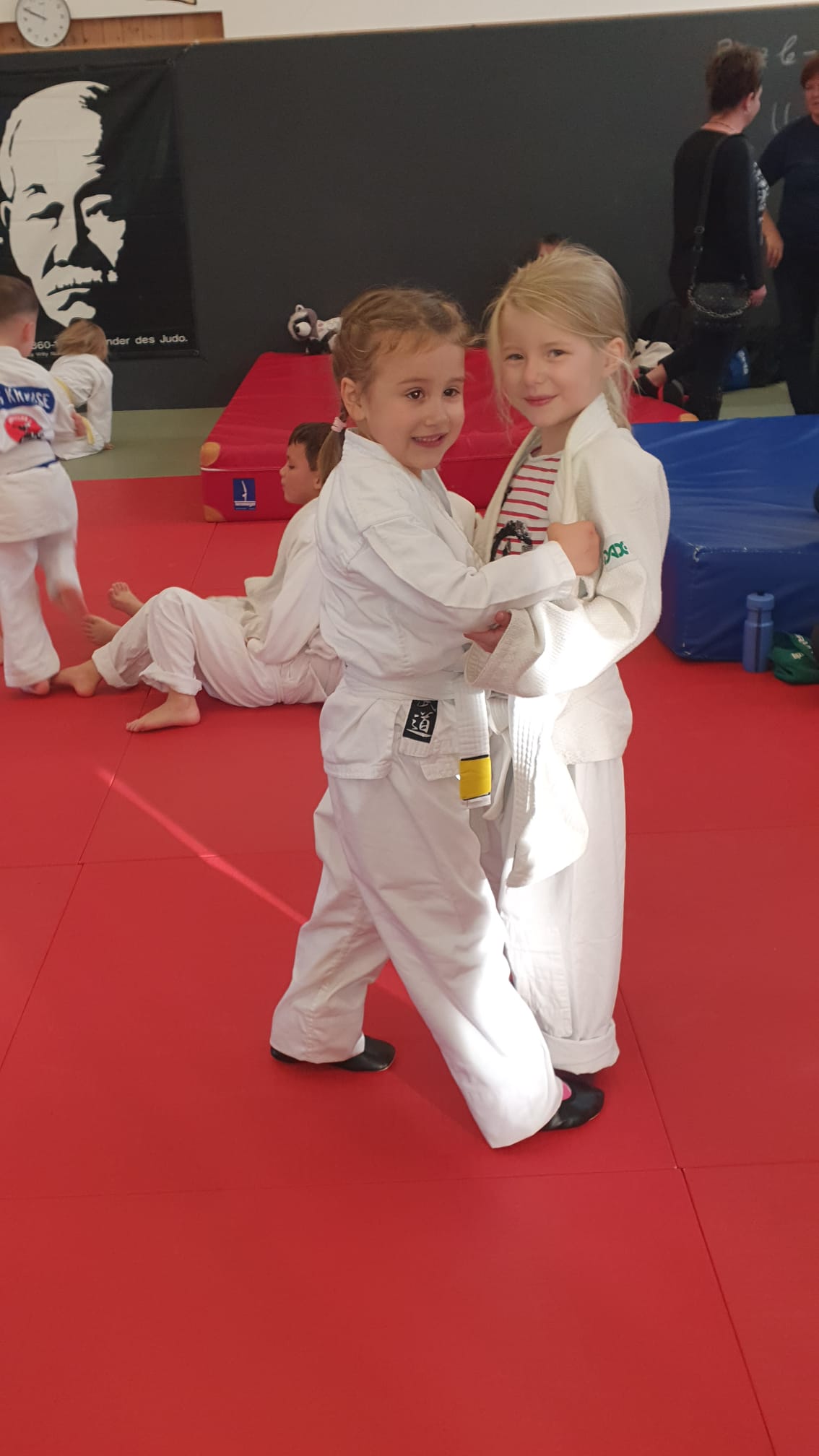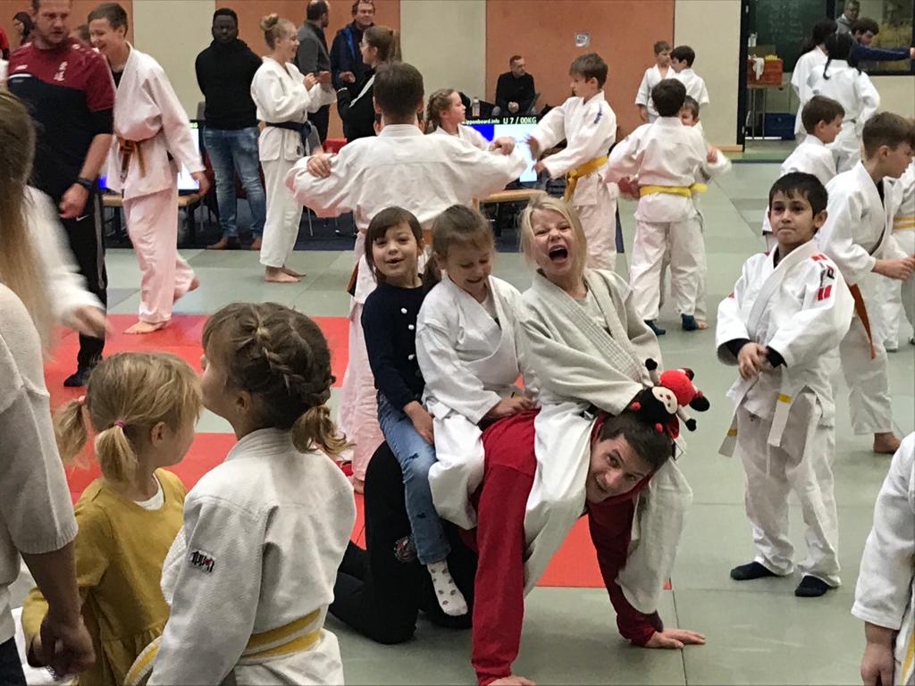 Tom Luca stand außerdem als Kampfrichter auf der Matte; Lucy, Kalle, Frank und Amelie waren an den Tischen am Einsatz; Manuel und Lisa betreuten das Torwandschießen, welches die Kinder ausprobieren konnten, wenn sie nicht auf der Matte dran waren. Komplettiert wurde das Helferteam von Küchenfeen Bianka, Claudia und Christian, die alle Kinder mit Waffeln und alle Erwachsenen mit Kaffee versorgten. Nach etwa zwei Stunden war das Kinderturnier vorbei, und die Gäste freuten sich über Medaillen und Preise.
