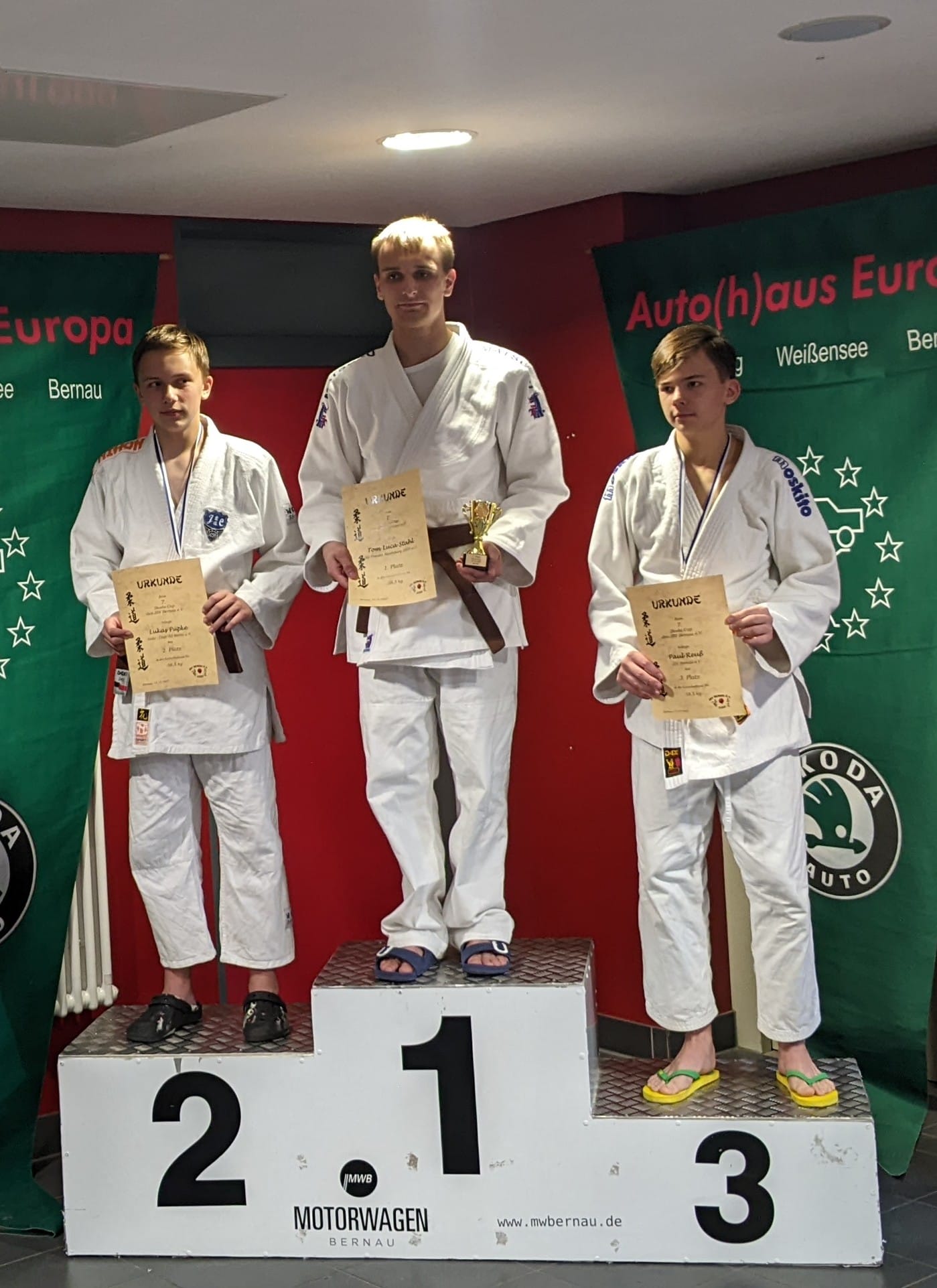 Nach einiger Wartezeit war dann auch Arthurs Gruppe an der Reihe. In insgesamt drei Kämpfen zeigte er sehr viele verschiedene Angriffe. Dabei gelang es ihm im ersten Kampf einen Tani-otoshi und einen Seoi-nage auf Wertung zu werfen und konnte den Kampf drei Sekunden vor Ablauf der regulären Zeit mit Ippon für sich entscheiden. Die darauffolgenden Kämpfe liefen jeweils über die komplette Kampfzeit, durch die Vielzahl an Angriffen in alle Richtungen, kamen seine Gegner jedoch sehr ins Straucheln und landeten mehrfach auf Po oder Bauch. Zwar blieb die Wertung aus, die Kampfrichter hatten jedoch im Hantei keine Bedenken den Sieg in beiden Fällen Arthur zuzusprechen, der sich anschließend über einen großartigen Pokal freuen konnte!