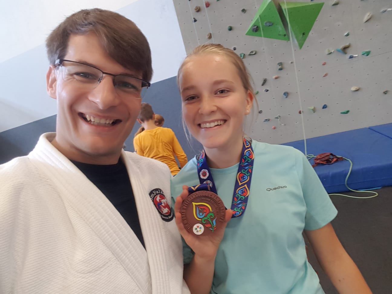 Amelie und Jocelyn starteten in der selben Gewichtsklasse mit einer weiteren Sportlerin aus Leipzig. Gegen die langen Arme und Beine konnten sich beide leider noch nicht durchsetzen, sodass sie nun untereinander die Verteilung von Silber- und Bronzemedaille auszukämpfen hatten. Das Duell ging dieses mal an die etwas fittere Jocelyn, da Amelie noch von einer vorherigen Mandelentzündung geschwächt war.