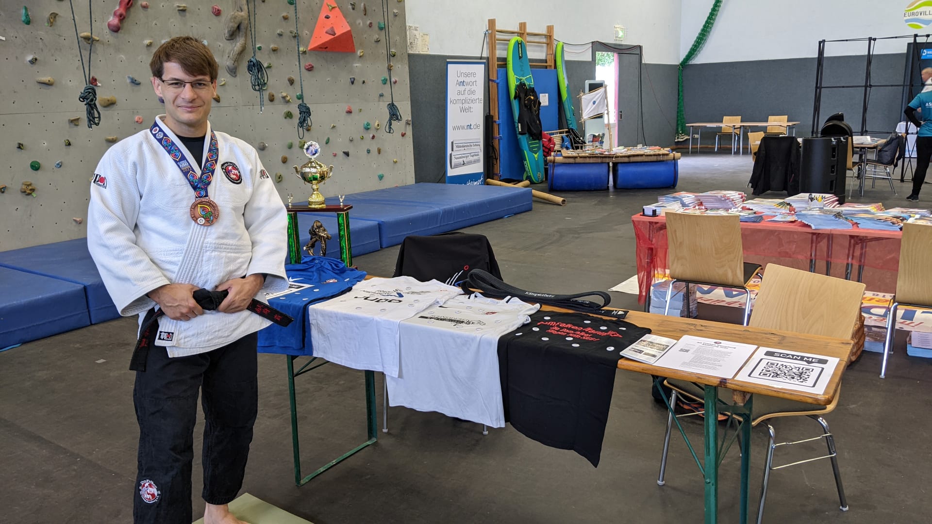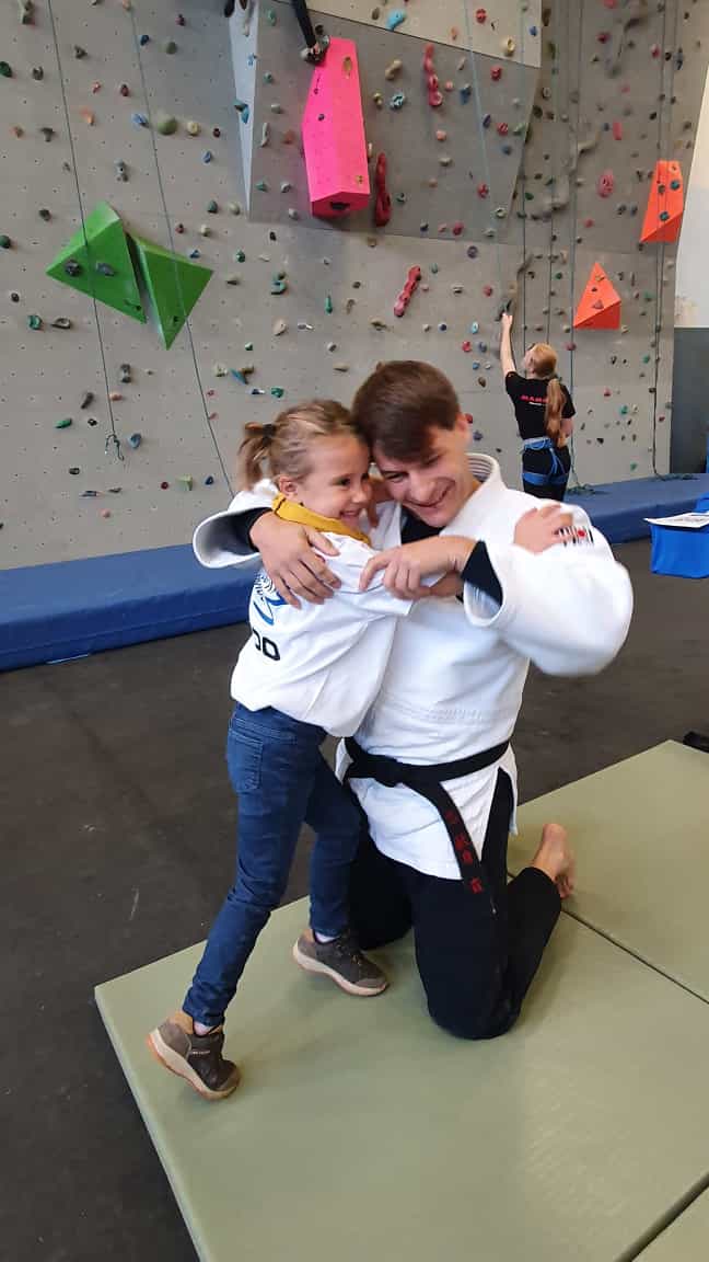 Als Jakob 12:00 Uhr zur Judo-Bundesliga aufbrechen musste, betreute Familie Bier um unsere Amelie direkt nicht nur ihren Klettervereinsstand, sondern halfen auch noch beim Judo-Stand mit - vielen Dank dafür. Am Schluss kam extra noch Lucas vorbei, um mit abzubauen. Schön, dass so viele uns an diesem Wochenende bei der Werbung für den Verein unterstützt haben.