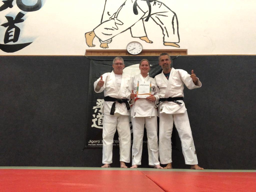 Angespornt vom Kampfgeist ihres Mannes drehte Martina voll auf und konnte in einem sehr spannenden Kampf nach anfänglicher Führung und Ausgleich durch die Gegnerin letztlich als Siegerin von der Matte gehen. In den anderen beiden Begegnungen unterlag sie zwar, die Bronzemedaille war damit aber super erkämpft.