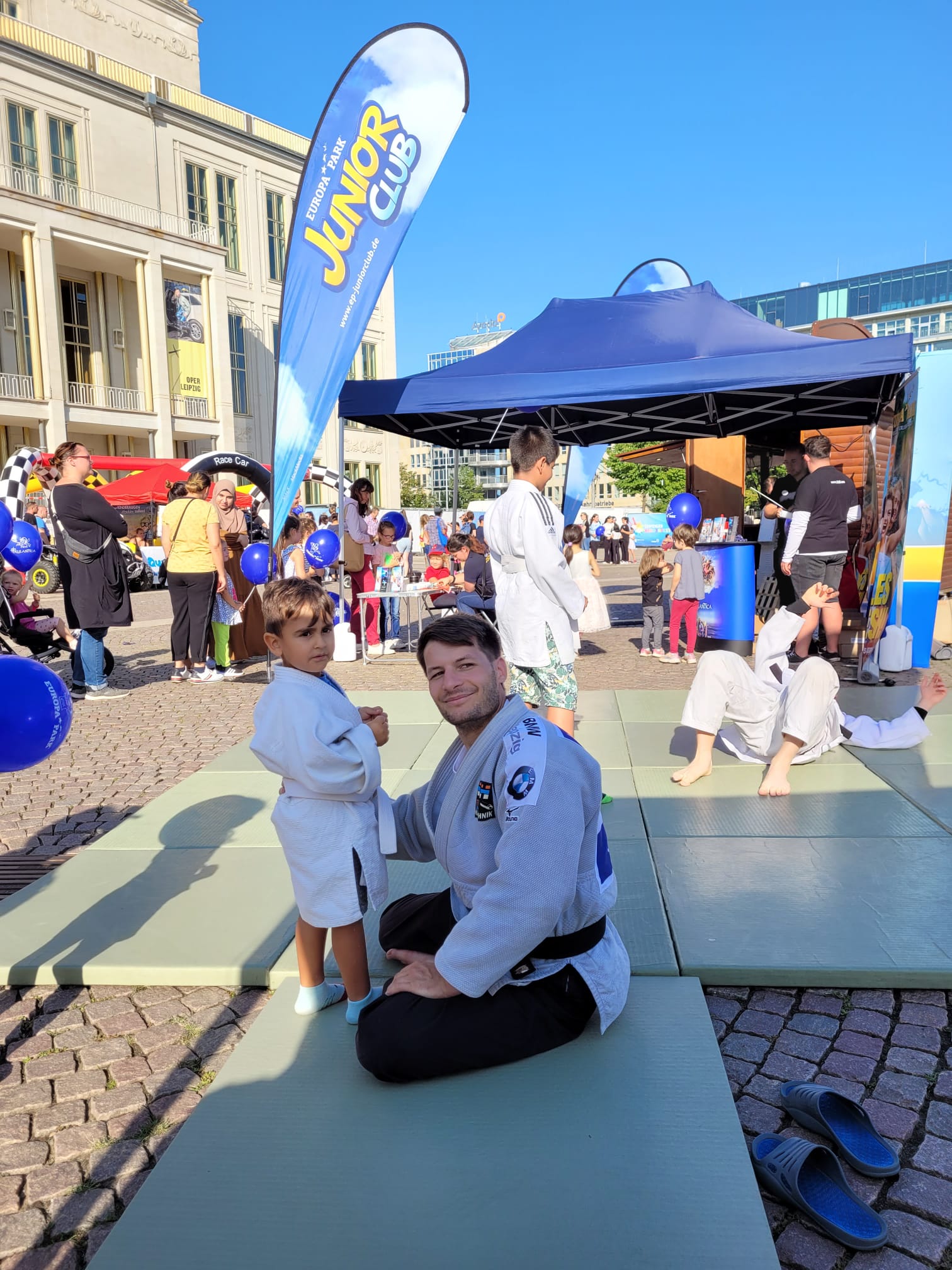 In der sauberen Halle konnte dann direkt das erste Training wieder starten (nicht, dass es in den Ferien kein Training gegeben hätte ). Am ersten Wochenende des Schuljahres waren unsere Judoka teilweise direkt unterwegs und zwar in Leipzig bei der Judosafari und dem Kinderfest der Stadt. Jenny (als Teil des Juniorteams des DJB) betreute mit Tom Luca zusammen Samstag und Sonntag die Kinder im Leipziger Zoo, wo sie auch von Melina und Lucy besucht wurden, die alle Stationen der Judosafari absolvierten und sich beide über den "schwarzen Panther" - das höchste Level der Judosafari - freuen.