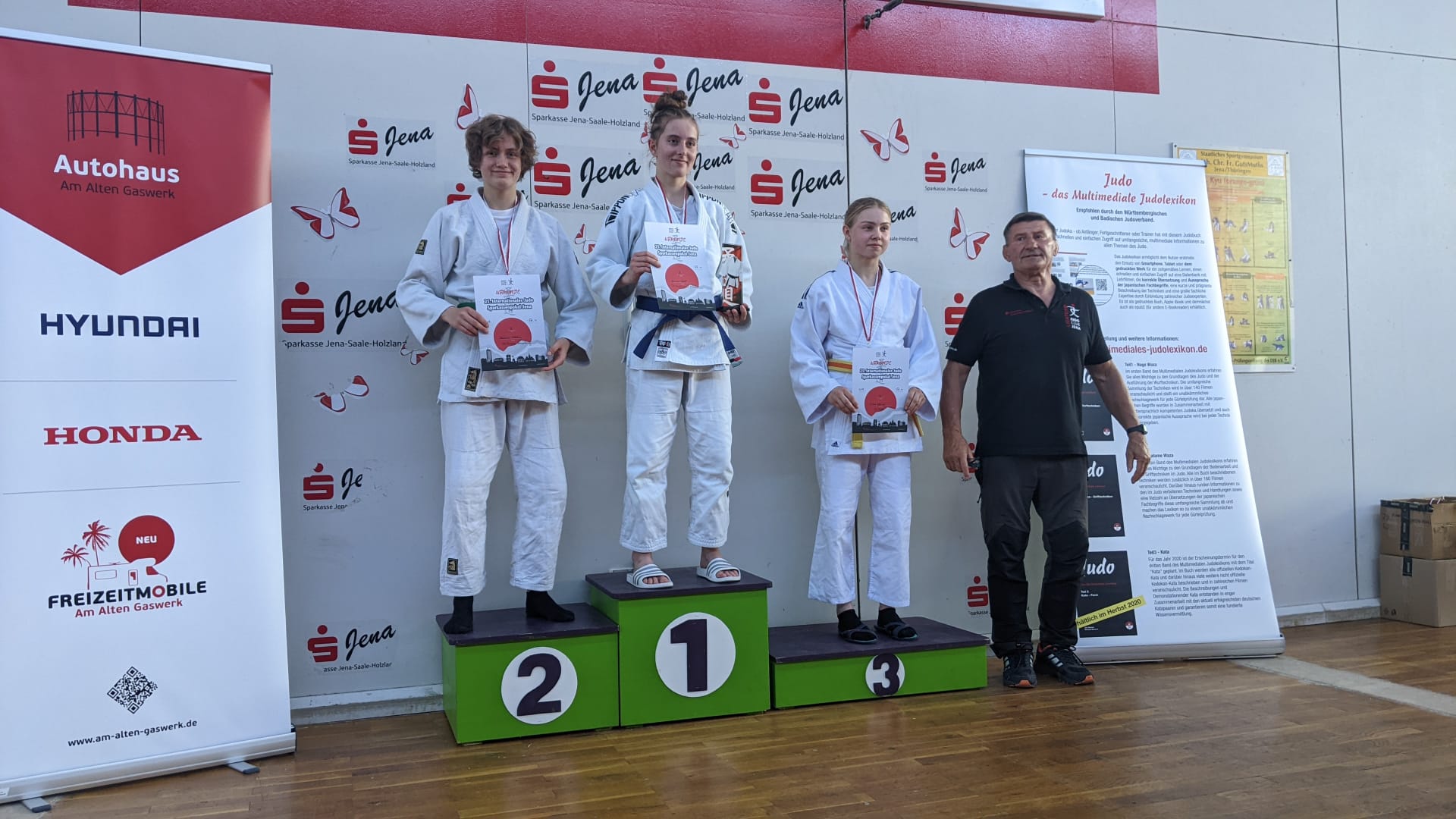 Dieses Wochenende ging es für unsere zwei Wettkämpferinnen Hannah Möttig und Amelie Bier zum 25. Internationalen Sparkassen-Pokal nach Jena. Hannah machte am Samstag den Auftakt in der Gewichtsklasse unter 52 kg. Im System Jeder-gegen-Jeden trat sie gegen drei andere Sportlerinnen an, davon eine vom SV Halle und die anderen zwei aus verschiedenen bayerischen Vereinen, was das hohe Niveau des Turniers zeigt. Nach der Erwärmung durfte Hannah bald zu ihrem ersten Kampf auf die Matte, welchen sie zügig mit einem Ko-soto-gake gegen die Sportschülerin gewinnen konnte. Bereit für den nächsten Kampf hieß es jetzt aber erstmal für alle vier Starterinnen dieser Gewichtsklasse: Warten. Erst volle zwei Stunden später ging es in die nächste Runde. Unberührt von dieser langen Pause trat Hannah wie gewohnt fit auf die Matte und dominierte auch diesen Kampf deutlich. Nach einem erfolgreichen O-uchi-gari nutzte sie den Übergang und befreite sich fast spielend aus der Beinklammer der Gegnerin, um sich damit den zweiten Sieg zu sichern. Im letzten Kampf wollten sich beide Sportlerinnen den Pokal sichern und schenkten sich nichts. Nach vielen Angriffen von beiden Seiten gelang es der Gegnerin aus Abendsberg jedoch ihren tiefen Seoi-nage nach über fünf Minuten Kampfzeit durchzusetzen und den Kampf im Golden-Score zu beenden. Damit ging der Pokal zwar leider nicht nach Naumburg, dennoch kann man mit der gezeigten Leistung auf diesem qualitativ hoch besetzten Turnier sehr zufrieden sein und sich über eine glänzende Silbermedaille freuen.
