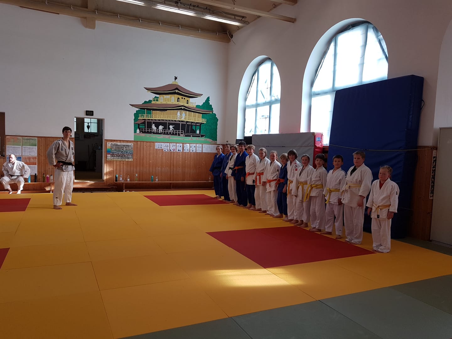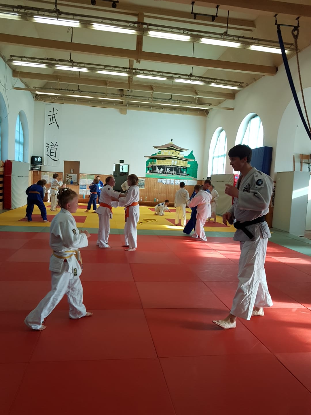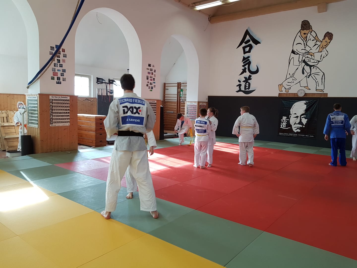 Am Freitag besuchte der JC-Leipzig-Erstbundesliga-Kämpfer Richard "Richi" Fiedler die 2. Trainingsgruppe und zeigte seine Spezialtechniken im Stand und Boden. Besonders überzeugte ihn dabei der frisch in diese Trainingsgruppe hochgerutschte Arthur, der vom sanften Riesen aus Leipzig als Belohnung für seinen Trainingseifer den gelben Gürtel überreicht bekam.